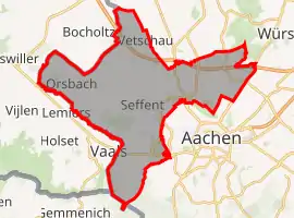 The borough borders other Aachen city boroughs Haaren, Aachen-Mitte and Richterich and the German communities of Kohlscheid (which is part of Herzogenrath) und Würselen (both of which belong to the district of Aachen, which is distinct from the city). Beyond the German border, the borough borders the Belgian town of Kelmis, in the Province of Liège, as well as the Dutch communities of Vaals, Gulpen-Wittem and Simpelveld, all contained with the Dutch Province of Limburg.