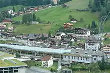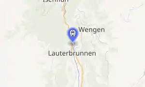 Lauterbrunnen is a railway station in the village and municipality of Lauterbrunnen in the Swiss canton of Bern. The station is on the Berner Oberland Bahn (BOB), whose trains operate services to Interlaken Ost. It is also the valley terminus of the Wengernalpbahn (WAB), whose trains operate to Kleine Scheidegg via Wengen, and of the Bergbahn Lauterbrunnen-Mürren (BLM), whose hybrid cable car and rail link runs to Mürren.[1][4]