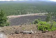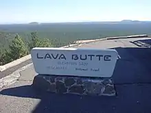 Lava Butte is a cinder cone in central Oregon, United States, just west of U.S. Route 97 between the towns of Bend, Oregon, and Sunriver, Oregon in Deschutes County. It is part of a system of small cinder cones on the northwest flank of Newberry Volcano, a massive shield volcano which rises to the southeast. The cinder cone is capped by a crater which extends about 60 feet (20 m) deep beneath its south rim, and 160 feet (50 m) deep from the 5,020-foot (1,530 m) summit on its north side. Lava Butte is part of the Newberry National Volcanic Monument.