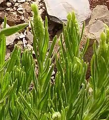 Lavandula viridis falls under the Order Lamiales because it is included in the category of flowers that have a superior ovary, two fused carpals, four fused petals, and four or less fertile stamens, while showing bilateral symmetry.[7] L. viridis is a member of the Family Lamiaceae due to its aromatic tissue, square stems, and tubular flowers.[8] Like the rest of the plants in the Genus Lavandula, they also are characterized by entire leaves, a unique aroma, herbal uses, and the appearance of flowers.[9]