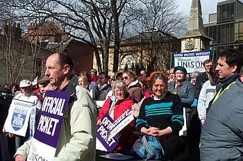 Cynicism over "officialdom" is still common, and the workings of public servants is typically contrasted to private enterprise motivated by profit.[149] In fact private companies, especially large ones, also have bureaucracies.[150] Negative perceptions of "red tape" aside, public services such as schooling, health care, policing or public transport are considered a crucial state function making public bureaucratic action the locus of government power.[150]