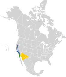 | Range of S. lawrencei Breeding range Year-round range Wintering range | |