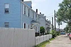 The Lawton Place Historic District is a historic district on Lawton Place between Amory Road and Jackson Street in Waltham, Massachusetts. The district preserves some of the nation's oldest textile mill worker housing. The duplex houses located on the south side of Lawton Place were built c. 1815-17 by the Boston Manufacturing Company (BMC), the first mill to process textiles entirely under one roof. They were originally located at what is now the Waltham Common, and were moved to Lawton Place in 1889. On the north side stands a rowhouse that was built in 1889; it is the last instance of a type of row housing that was once commonly built for mill workers.[2] The district was listed on the National Register of Historic Places in 1989.[1]