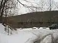 The Layton Bridge is a Pratt truss bridge over the Youghiogheny River in Layton, Pennsylvania. Originally built for the Washington Run Railroad, construction began 1893 and was completed in 1899. The last train crossed in 1931. The bridge and a tunnel immediately to its south were converted to a single automobile lane in 1933 as part of a road that connects Layton with Perryopolis, near the suspected location of the eighteenth-century Spark's Fort.