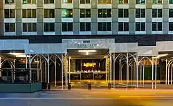 The hotel opened on March 13, 1981 as the Hotel Parker Meridien New York.[1] The hotel opened on Friday the thirteenth, a date considered lucky in France. Because the date is considered unlucky in the US, however, the actual grand opening celebration was held a week later, on Friday March 20, 1981. The hotel was developed by the New York-based Jack Parker Corporation and managed by Air France's Meridien Hotels division. In 1979, the New York City Department of City Planning gave Parker permission to construct a 40-story building, eight floors past the 32-story maximum for a building with that lot area, provided that the corporation add a public atrium. The hotel was later slightly renamed, becoming Le Parker Méridien New York. The atrium seating was removed in 1990, and subsequently restored after a "high-profile" campaign by the New York City Department of Buildings.[4] Under the Parker Corporation's management, Le Parker Meridien was one of the few luxury hotels in the city that accommodated wild animals as guests.[5] In 2012, the hotel's coffee bar was flooded with concrete following a construction accident at a neighboring building.[6]