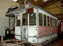 ![]() Unrestored Leamington and Warwick tram at the National Tramway Museum | |||||||