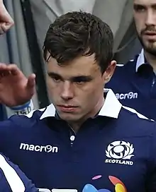 His pace, and strength in the contact and an unquestionable eye for the try line resulted in a call up into the Scotland senior squad for the 2012 Six Nations Championship and started on the wing against England on 4 February,[9] scoring his first try for Scotland against France, and becoming injured after a head clash with Andrew Trimble in the Scotland vs Ireland game,[10] causing him to miss the game against Italy. To date he has won ten caps for Scotland, most recently against New Zealand in 2017.