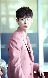 In 2014, he starred in teen romantic comedy Hot Young Bloods, playing a cheesy womanizer.[21][22] Lee then starred in hit medical drama Doctor Stranger, playing a North Korean defector who works as a doctor in South Korea.[23] The drama was a success in China, gaining 400 million views.[24] Lee next starred in Pinocchio opposite actress Park Shin-hye,[25] and played the protagonist Choi Dal-po, a first year reporter at a broadcasting company who struggles with the idea of justice and truth in a world where everyone wants to hide the facts.[26] Pinocchio was another hit, with a reported revenue of 6.2 billion won (US$5.62 million) for broadcasting rights in just one year.[27][28] Lee's performances in the dramas Doctor Stranger and Pinocchio earned him acting accolades, including the Male Top Excellence Award at the 8th Korea Drama Awards.[29] He also became the youngest actor to win the Best Actor award at the 27th Grimae Awards, chosen by television cinematographers.[30]