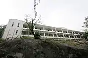 Located beside Block 7, formerly used as an outhouse and now deactivated. The photograph shows the drastic difference between the conditions of both buildings. Block 7 in the background, and Block 8.