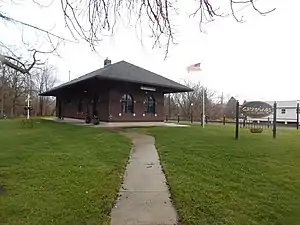 Leicester station is a historic railway station located at Leicester, New York in Livingston County, New York. It is a 1-story, two-by-four-bay brick building surmounted by a hipped roof with broad overhanging eaves. It was built in 1915 in the Arts and Crafts style.[2]