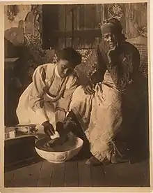Miner was born in 1864 in Cornwall, Connecticut, to a family of schoolteachers. After studying drawing at the Academy of Design in New York (1886-91), and Applied Arts at the Pennsylvania Museum School in Philadelphia (1891), he traveled to Yakutat, Alaska during the Gold Rush, where he closely observed and collected Inuit and indigenous Northwest coast crafts.[7] He began teaching Art at Hampton Institute in 1898 and became Director of Applied Art in 1912 until his retirement in 1933.[8][9] He photographed Gullah people on St. Helena Island off the coast of Beaufort, South Carolina in several trips from 1906 to 1924. The photographs include educational methods, midwives, students, and alumni of the Penn Normal Industrial and Agricultural School, a satellite of Hampton, as well as illustrating activities at the Penn health clinic and trades, living conditions, and craft traditions of area residents.[10]