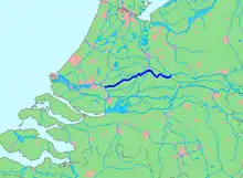 The Lek (Dutch pronunciation: [lɛk]) is a river in the western Netherlands of some 60 km (37 mi) in length.[1] It is the continuation of the Nederrijn after the Kromme Rijn branches off at the town of Wijk bij Duurstede. The main westbound waterway is hereafter called the Lek River. The Nederrijn is, itself, a distributary branch of the river Rhine.