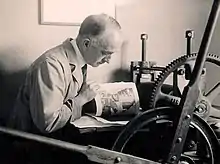 ![]() Leonard Beaumont printing his etching 'Fribourg', 1928 | |