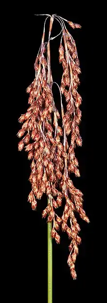It was first described by Robert Brown in 1810 as Restio laxus,[2][5] a name he gave to two Restio species.[6][7] This problem of two species with the same name was corrected by Kurt Sprengel in 1825 when he published the name, Restio diffusus, for this species.[6][8] In 1998, Lawrie Johnson and Barbara Briggs transferred R. diffusus to the genus, Leptocarpus.[9] In 2001 in consideration of IUCN rules, the species Leptocarpus diffusus was renamed Leptocarpus laxus by Barbara Briggs.[6]
