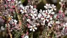 Leucopogon sprengelioides is an erect shrub in the family Ericaceae found in Western Australia, where it grows on granite outcrops and hill, ridges and breakaways and on coastal limestone. It grows to a height of 0.2 - 0.8 m and its white flowers may be seen from March to April or July to November.[4]
