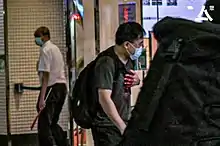 For several days in a row, up until the seventh day, members of the public gathered in front of the Sogo department store in Causeway Bay to mourn Leung. Many wore the black shirts that had become the de facto uniform of 2019–2020 anti-government protesters, bringing white flowers, lighting joss sticks and candles.[18] A large number of police arrived, patrolled in groups, stopped and searched citizens nearby and attempted to deter and disperse them.[18] The Hong Kong Police warned that advocating for people to mourn for the attacker was no different from "supporting terrorism" and criticised parents who took children to mourn for him.[3] Police said that mourning the individual was an attempt “to glorify, romanticise, make heroic and even rationalise the blatant violence of the attacker”, and could be in breach of the national security law.[3][19]