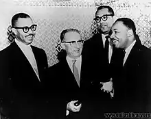 Olan was also one of the few white members of the Dallas County United Poll Tax Committee, which opposed the $1.75 poll tax as a vestige of post-Reconstruction Era racism. On January 4, 1963, Olan joined the Rev. Dr. Martin Luther King, Jr. at a poll tax rally at the Fair Park Auditorium.[30]