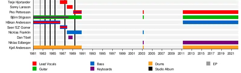 - Björn Stigsson - Guitar (1981-1990, 2003, 2011–present), Keyboards (1981-1989)