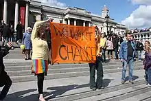 The Liberal Democrats support a range of constitutional reforms, including by advocating a decentralised federal structure for the United Kingdom, including devolving power to the regions of England.[170] The party supported devolution to Scotland and Wales enacted by the Labour government under Tony Blair. The party has consistently supported electoral reform to produce more proportional results.[171] On social issues, the party is liberal and progressive. It has consistently supported LGBT rights and drug reform.[172] The party is internationalist and pro-European. They have consistently supported policies of European integration, including long-term advocacy of the United Kingdom adopting the euro,[173] though they have opposed the establishing of a European army.[161][174] Both before and after the 2016 United Kingdom European Union membership referendum, the party has advocated for the United Kingdom's continued membership of the European Union. The party support liberal interventionism. They supported the war in Afghanistan, later opposing the 2003 invasion of Iraq due to its lack of support from the United Nations.[168] The party has also faced internal division over the issue of nuclear weapons and the United Kingdom.[164]