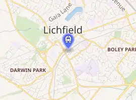 Lichfield City is one of two railway stations serving the city of Lichfield, in Staffordshire, England. It is situated in the city-centre, and is towards the northern end of the Cross-City Line 17+1⁄4 miles (27.8 km) northeast of Birmingham New Street. The station, and all trains serving it, are operated by West Midlands Railway. The other station serving Lichfield is Lichfield Trent Valley, on the city outskirts.