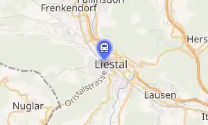 ![]() Liestal station, with main line to left and Waldenburg line to right | |||||||||||||||||||||||||||||||||||||||||||||||||||||||||||