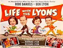 Life with the Lyons is a 1954 British comedy film directed by Val Guest and starring Bebe Daniels, Ben Lyon and Richard Lyon. It was a spin-off from the radio series Life with the Lyons, and the screenplay was based on previous episodes from the show.[3]