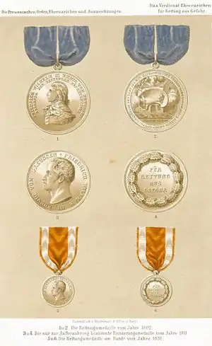 ![]() Versions of the Kingdom of Prussia's Lifesaving Medals | |