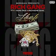 "Lifestyle" is a song by American hip hop group Rich Gang, featuring rappers Young Thug and Rich Homie Quan. The song, produced by London on da Track,[1] was released on June 5, 2014. It has been certified Platinum in the United States.