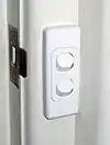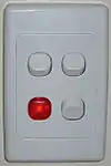 While larger "decorator" style switches are readily available in Australia, the advantage of the smaller mechanisms is that wall-plates are available to mount from one to six individual switch mechanisms, or other correspondingly sized "mechanisms" - such as dimmers and indicator lights - in the same space as one (or two) switches of larger design could be mounted. Since the mechanisms are small, they can also be mounted into "architrave" plates, for mounting in positions where it is not possible to mount a "standard" sized wall-plate. An example is shown in the picture below on the right. All of the switch mechanisms have no exposed metal parts requiring grounding (earthing). While switches, wall-plates, and cover plates from different manufacturers tend not to be interchangeable, switch mechanisms of this type have been available in Australia since 1951.[7]