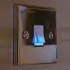 Illuminated switches incorporate a small neon lamp or LED, allowing the user easily to locate the switch in the dark. Household illuminated switches were introduced in the mid-1950s.[4]