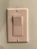 An alternative design to the toggle switch is the rocker switch. Large switches of this design are commonly known in the United States as "decorator" or "Decora" style.[5][6] "Decora" is a trademark of Leviton, and the term in recent years has become a genericized trademark in the United States for any rocker light switch regardless of brand. Switches of this design sit almost flush with the wall plate, and are activated by "rocking" a flat, broad lever, rather than pushing a short protruding actuator up or down.