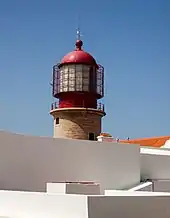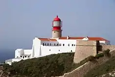 The Lighthouse of Cabo de São Vicente (Portuguese: Farol do Cabo de São Vicente) is beacon/lighthouse located along the coastal peninsula of Sagres Point in the civil parish of Sagres, in the Portuguese municipality of the Vila do Bispo.[1] Not to be confused with the Lighthouse of Ponta de Sagres, which is the located further to the edge of the extreme southwest cape of the civil parish, southwest of the Fortress of Sagres.