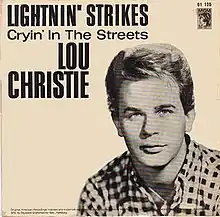 "Lightnin' Strikes" is a song written by Lou Christie and Twyla Herbert, and recorded by Christie on the MGM label. It was a hit in 1966, making it first to No. 1 in Canada in January 1966 on the RPM Top Singles chart,[1] then to No. 1 in the U.S. on the Billboard Hot 100 in February, No. 3 on the New Zealand Listener chart in May,[2] and No. 11 on the UK Record Retailer chart. RIAA certification on March 3, 1966, garnering gold status for selling over one million copies.