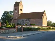 Built in the Romanesque period, the church initially consisted of chancel and nave constructed in stone with the use of stone ashlars at the corners. In the Gothic period, the nave was extended westwards. The lower part of the extension is constructed in stone from the original church while the upper part is built of brick. The crow-stepped west gable has arched niches. A porch was at the same time added on the west side of the church. The tower was built on top of the chancel in 1859 and heightened in 1906.[1]