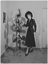 Daché in 1940 received a special award from Neiman-Marcus for her design of a hat for Lord and Taylor. In 1943 she received the Coty American Fashion Critics' special award in millinery.[5] She was known for designing custom clothing with matching cloche hats[5] and swagger hats beginning in 1948.[25][26][27] By 1949 she was designing and making lady's complimentary clothing, dresses, lingerie, accessories, perfumes, cosmetics, and jewelry.[28][29] She had business branches for these products in Paris.[1] Her Lilly Dache label became synonymous with elegance.[5] During the late 1950s lady's fashion hats were no longer popular, so during this time Dache went into the beauty salon business. She was president of Lilly Dache' Hair Products and in 1956 wrote a book titled Lilly Dache's Glamour Book. She was not as successful at this as she was in her hat business and closed her doors on all business ventures by 1969, retiring when her husband retired.[22][5]