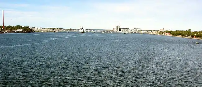 The Limfjord Railway Bridge (Danish: Jernbanebroen over Limfjorden) is a railway bridge carrying the Vendsyssel railway line across the Limfjord, a shallow sound separating the North Jutlandic Island from the rest of the Jutland Peninsula, between Aalborg and Nørresundby in North Jutland, Denmark.