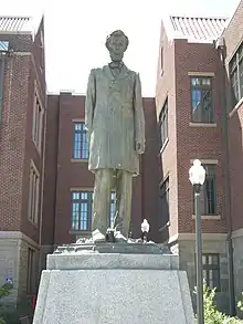 On the grounds, the most distinguishing feature is Alonzo Victor Lewis' statue of Lincoln, unveiled February 12, 1918. The purchase price of $4,000 was made possible by contributions from Tacoma Public Schools and patriotic organizations.