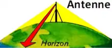 The radio horizon is the locus of points at which direct rays from an antenna are tangential to the surface of the Earth. If the Earth were a perfect sphere without an atmosphere, the radio horizon would be a circle.