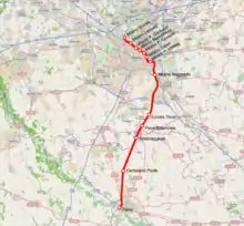 Line S13, a cross-city route, heads initially in an southerly direction from Milano Bovisa-Politecnico through the Milan Passante railway to Milano Rogoredo. From there, it turns southwest towards its southern terminus, Pavia.[2]