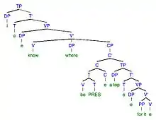 5b. Pat VP[wrote PP[on the blackboard] NP[ [something about Chris.]]
