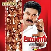 Lion is a 2006 Indian Malayalam language political action thriller film written by Udaykrishna-Sibi K. Thomas and directed by Joshiy.[2][1] The film stars Dileep, Kalasala Babu, Kavya Madhavan and Vijayaraghavan alongside a supporting cast that include Jagathy Sreekumar, Innocent, Sai Kumar, Shammi Thilakan, Riyaz Khan and Karthika.[3] The film was produced by Noushad and distributed by Shan Entertainment. The film was a blockbuster at the box office.[4][5] It was remade in Tamil as Nam Naadu[6] and in Telugu as Evadaithe Nakenti.[7][8][9]