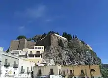 View of the 16th century Lipari castle on the old Greek acropolis as seen from Piazza Marina Corta