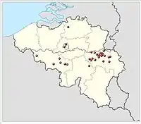 Historically, most of antoinist temples in Belgium were built before the World War II, when at least one of the founders was still alive. The first temple, the one of Jemeppe-sur-Meuse, was consecrated two years before the death of Louis Antoine, the founder of the religion. Other temples were often built in Belgian spa towns or in the countryside, and are mostly gathered in the French-speaking region — there are only three temples located in the Flanders region — and particularly in the province of Liège which counts 21 buildings. However, no temple has been built since 1968 and the antoinism spreading is now on the decline in the country, so much so that several places of worship are being unused because of a lack of clergy members. One of them — the temple in Tournai — was even sold in 2001.[1]