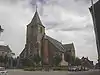 | Wavre | Saint-Jean-Baptiste Church (FR)[12] | Gothic 16th century | nave and base of the tower of red stone, tower of red brick with narrow layers of white stone | ![]() |