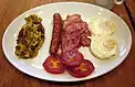 1861[lower-alpha 2][18] | Savoury | National | A selection of fried foods such as sausages, bacon, eggs, mushrooms, bread, tomatoes; options include kippers, baked beans |