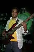 ![]() Mizraab performing live at V-Sel Outlet, Karachi, in 2011. Visible from left to right are; Ferdinand Goveas, Irfan Ahmed (back), Faraz Anwar and Muhammad Muzzamil. | |