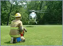 Penn Hills Fire Service firefighters landing a medical helicopter