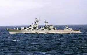The Slava class was designed as part of a new strategy of creating bastions for ballistic missile submarines. Project 1143 and 1164 ships were to protect these bastions, and the new SS-N-12 missile was designed to strike major enemy anti-submarine warfare units.