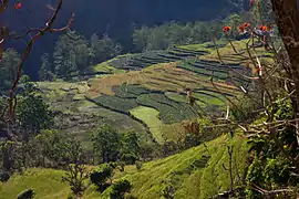 Terraced rice farming in Nepal.