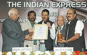 The Speaker, Lok Sabha, Shri Somnath Chatterjee, presenting Excellence in Journalism - 2006 Award to The Indian Express, in 2006